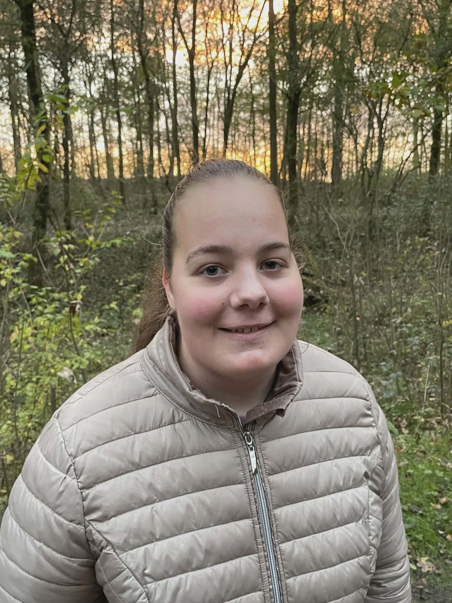 Hanne is 19 jaar en houdt van paardrijden en ook van haar viervoeter, onze hond Sam.